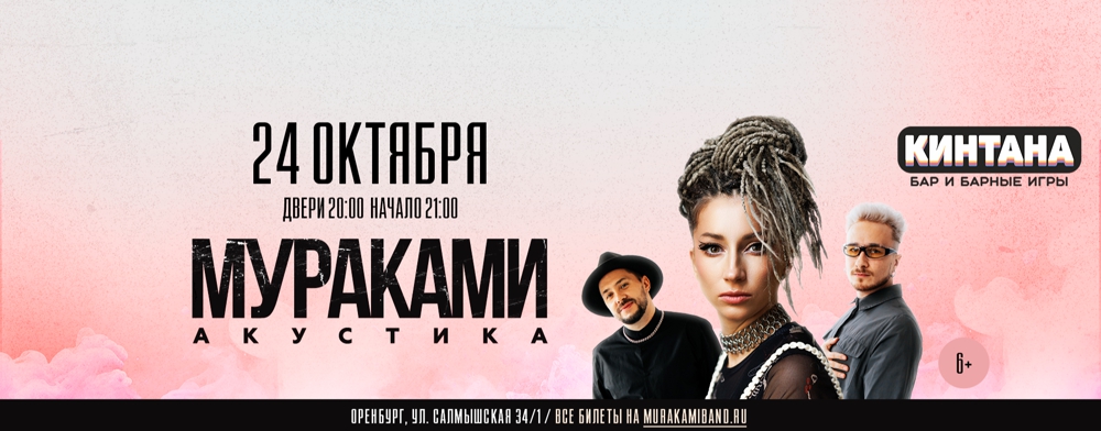 24 октября 2025 в Оренбургском баре «Кинтана» состоится акустический концерт группы Мураками.